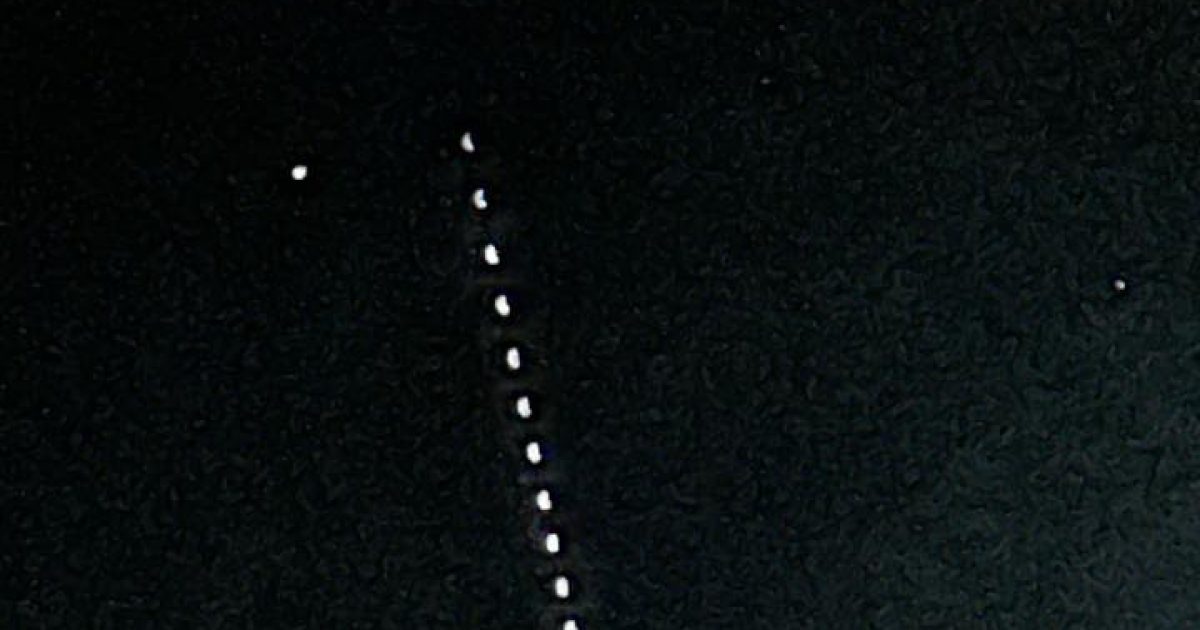 A ‘train’ of Starlink satellites spotted over Canberra. Photo: Kristy Collins, Canberra Notice Board Group, Facebook.