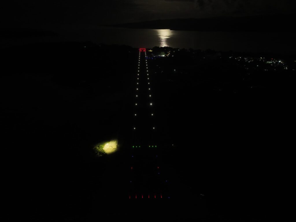 All major airfield works are now complete. These include runway sealing, pavement and shoulder improvements, and installation of airfield ground lighting.