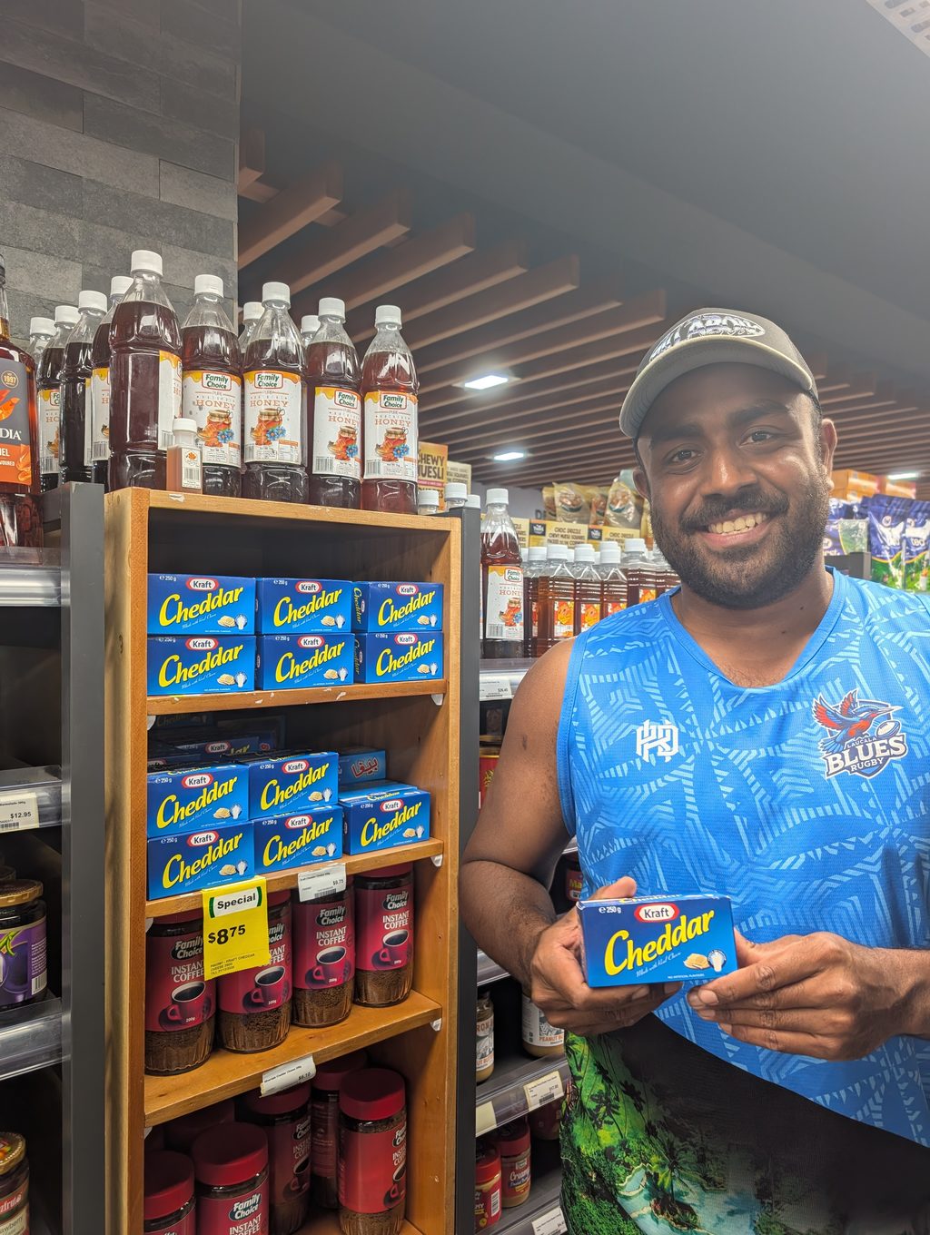 Right: Joseph Vatubua shops for Cheddar Cheese at Fresh Choice, Namadi Heights.